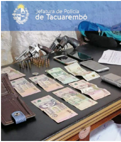 Posteriormente, en la casa se incautaron electrodomésticos varios y sustancias estupefacientes (marihuana y cocaína), en el interior del vehículo se ubicaron celulares, dinero en efectivo, dos armas de fuego y municiones.