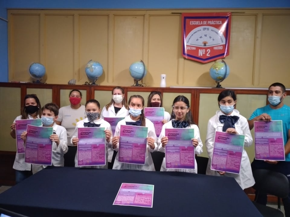 Sobre la fundamentación de este proyecto el equipo de docentes, Alicia Chiappara, Fernanda Fernández, Federico Moggia, informan: “En momentos como los actuales, en los que todos sufrimos las consecuencias de la violencia en nuestra vida cotidiana, los niños constituyen el grupo más vulnerable. Es por eso que el estudio y la reflexión acerca de sus derechos, su efectivo cumplimiento o su violación son temas de gran importancia para acompañarlos en el camino de la construcción de su ser. Nuestro proyecto invita a los niños y adolescentes a trabajar sobre temas relacionados con sus derechos y deberes, con el fin de concientizarlos sobre ellos. Aspiramos a despertar la conciencia individual, para poder luego establecer acciones sociales encauzadas a la participación de los alumnos en temas que les atañen en su ámbito local y el intercambio telemático entre estudiantes y docentes, que favorece el conocimiento de otras realidades, a la vez que se reconoce y revaloriza lo propio. Buscamos una participación activa, juntos analizaremos y confrontaremos diferentes situaciones y realidades que generarán su juicio crítico. Esperamos que sea éste un aporte valedero para educar para la vida y construir así ese mundo mejor en el que estamos empeñados”.