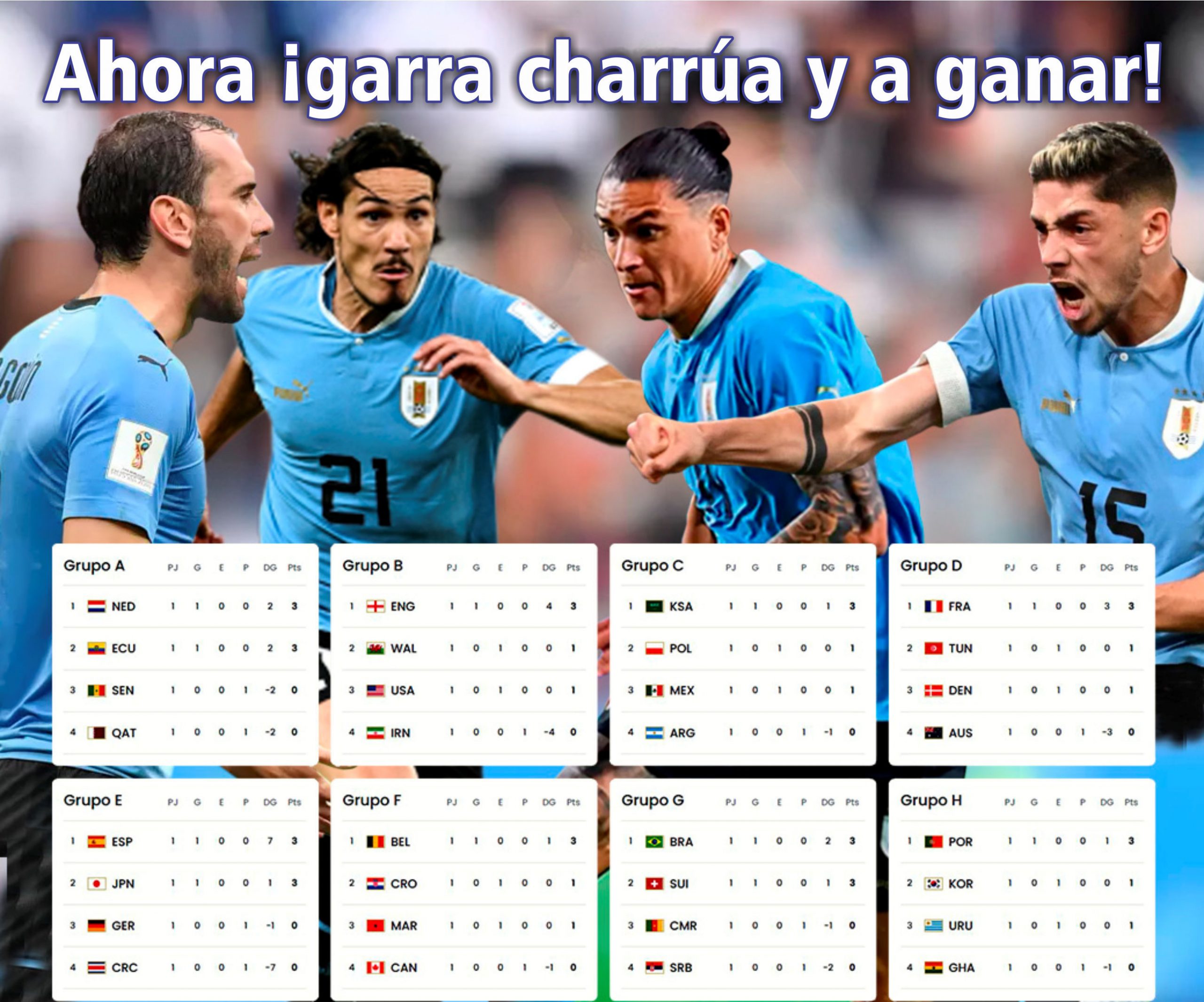 Con este resultado Uruguay quedó obligado a sumar el próximo lunes, cuando enfrente al equipo de Cristiano Ronaldo que ayer abrió el camino para el triunfo del seleccionado de su país. Al mismo tiempo, se transformó en el primer futbolista que anota goles en cinco mundiales. El partido con Uruguay se juega desde las 16 horas en el estadio Lusail.