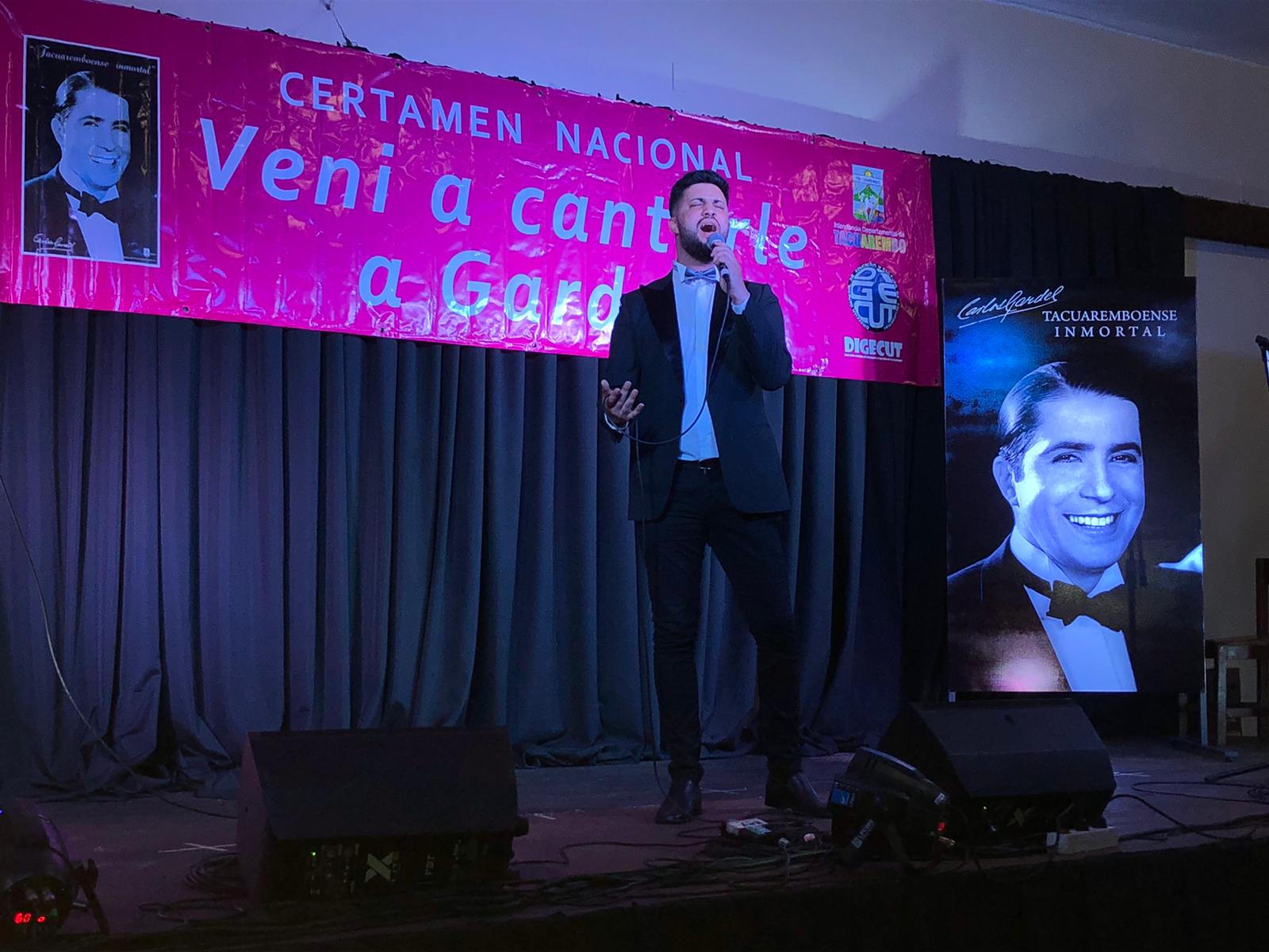 Desde Montevideo llegó la Mejor Voz que le cantó a Gardel, en la edición 24 del certamen que abarca varios géneros musicales y distribuye varios premios.
